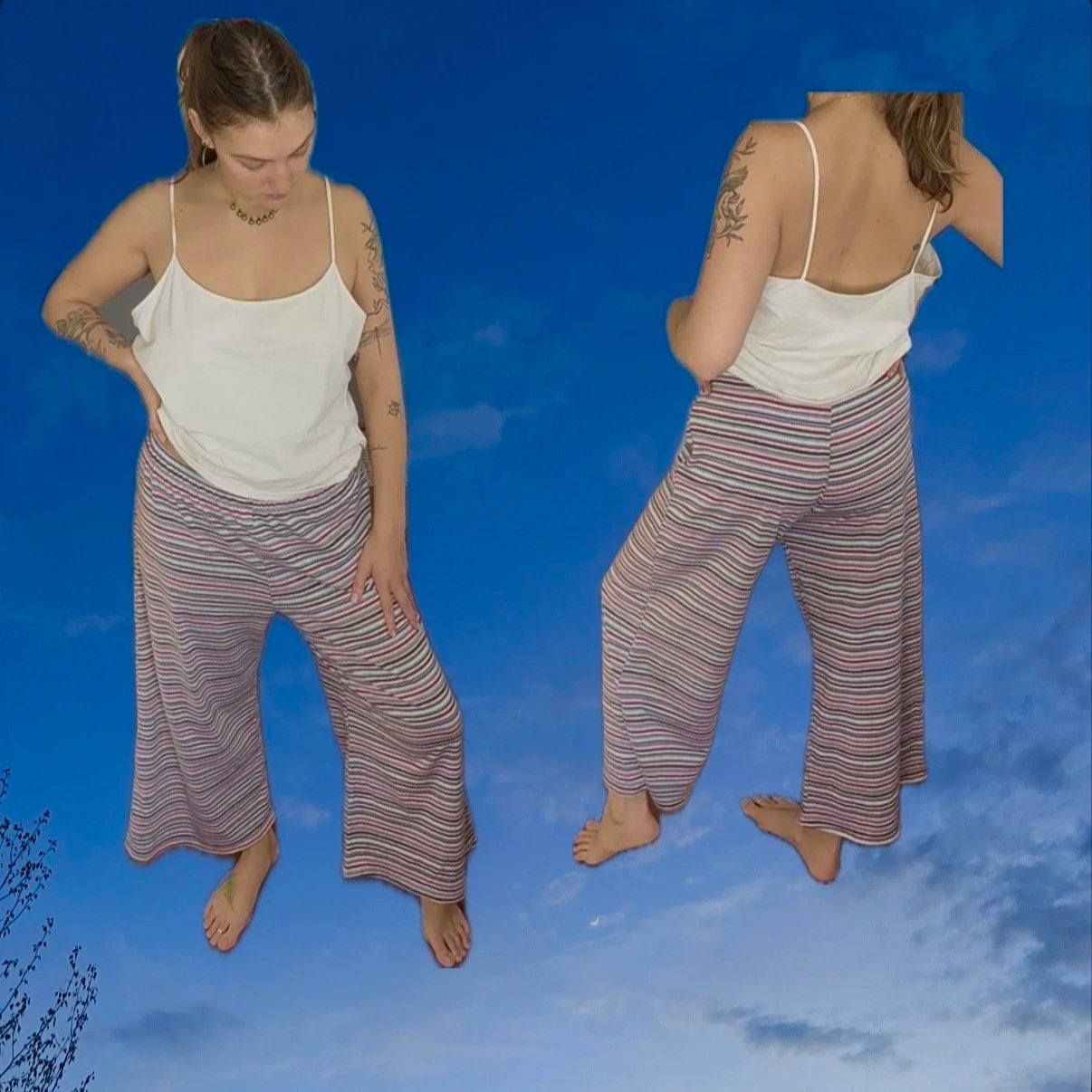 hi all! my name is Liv and it’s such a pleasure having you on my site. each piece is handmade by me from recycled fabric that i find mostly at thrift stores, with an emphasis on natural fibers. since i was in high school i have had a passion for sewing, and this passion grew and evolved while working at a sewing shop in college as i was pursuing a degree in sustainability. it was at this shop where i learned the benefit of hemming, altering, and patching clothes to extend their lives, as well as reworking existing material into something new. my goal with sheets in the wind is to bring new life to discarded fibers. these pieces are designed for comfort, style, & to support movement. i hope you enjoy <3